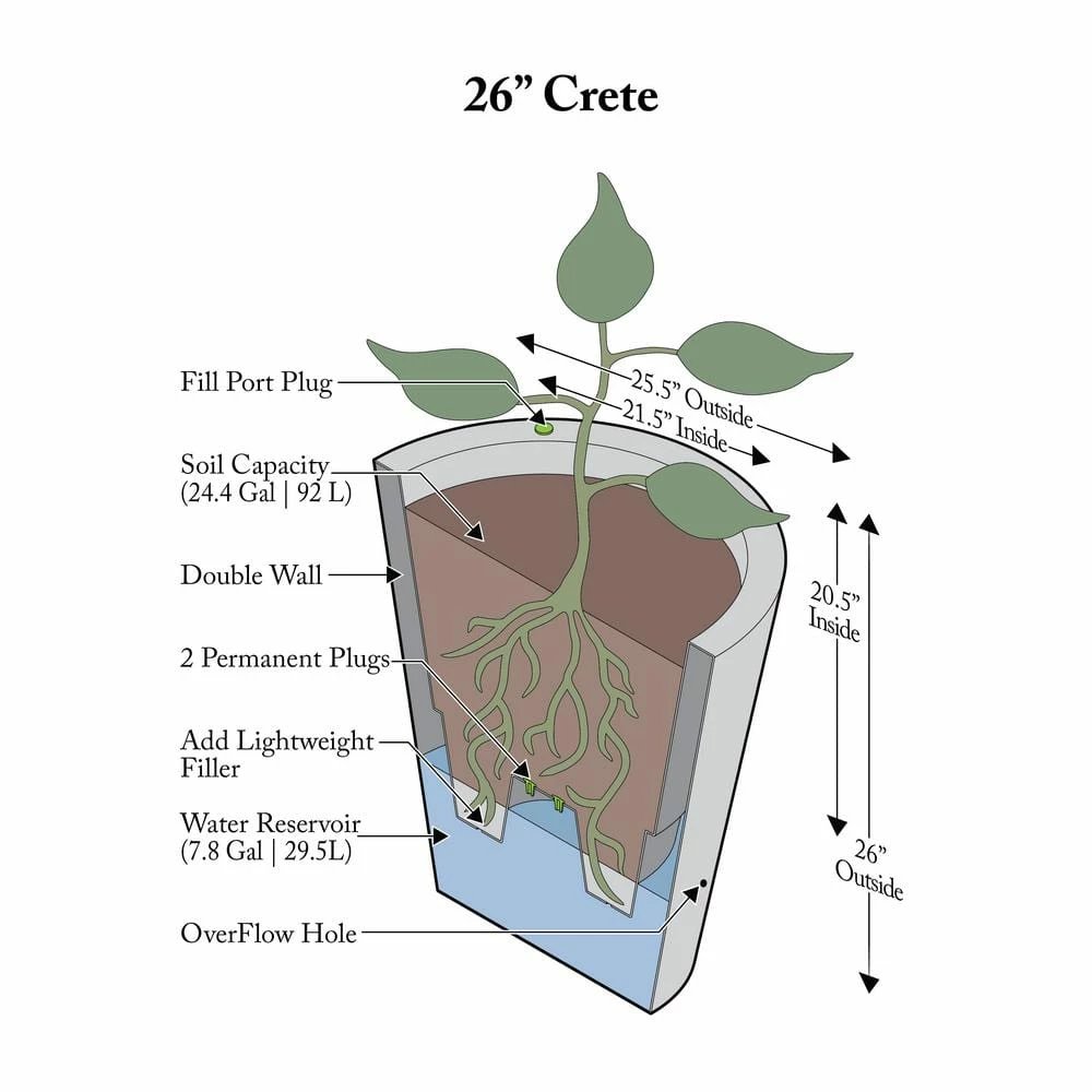 This elegant self watering planter provides a classic contemporary pot for your home and garden. Handcrafted texturing provides an authentic concrete look. Including a 10-years warranty, the Crete self-watering planter is incredibly durable. This flower pot is resistant to cracking, fading and chipping, yet light enough to move. Equipped with an internal water reservoir, overflow drain and plug making watering simple.