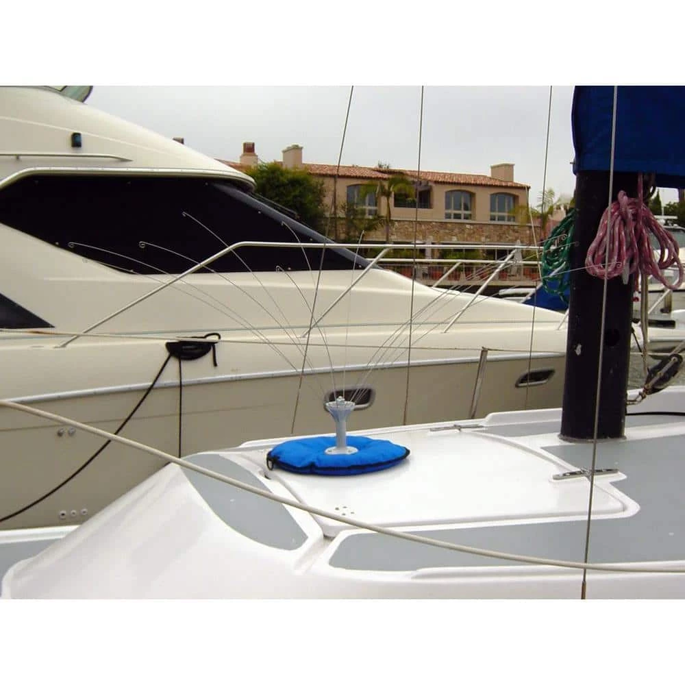 The Bird B Gone Sand Bag Base is an optional base for use with the Bird B Gone Repeller 360 and/or Bird Spider 360. The Bird B Gone Sand Bag Base is recommended for use on biminis, canvas tops and decks, enabling the Repeller 360 and/or Bird Spider 360 to be weighted down and stand alone. The Bird B Gone Sand Bag Boat Base installs directly to the bottom of the Repeller 360 and any size Bird Spider 360 and includes all necessary hardware for installation. The Sand Bag base is portable and can be easily stowed while boating. Each base weighs 6.5 lbs. and has eyelets around the outer ring for extra stabilization.