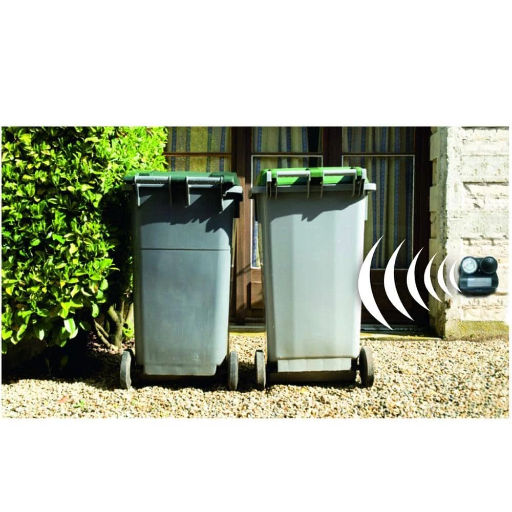 - Uses a sequence of light and sound to scare pests away from your property