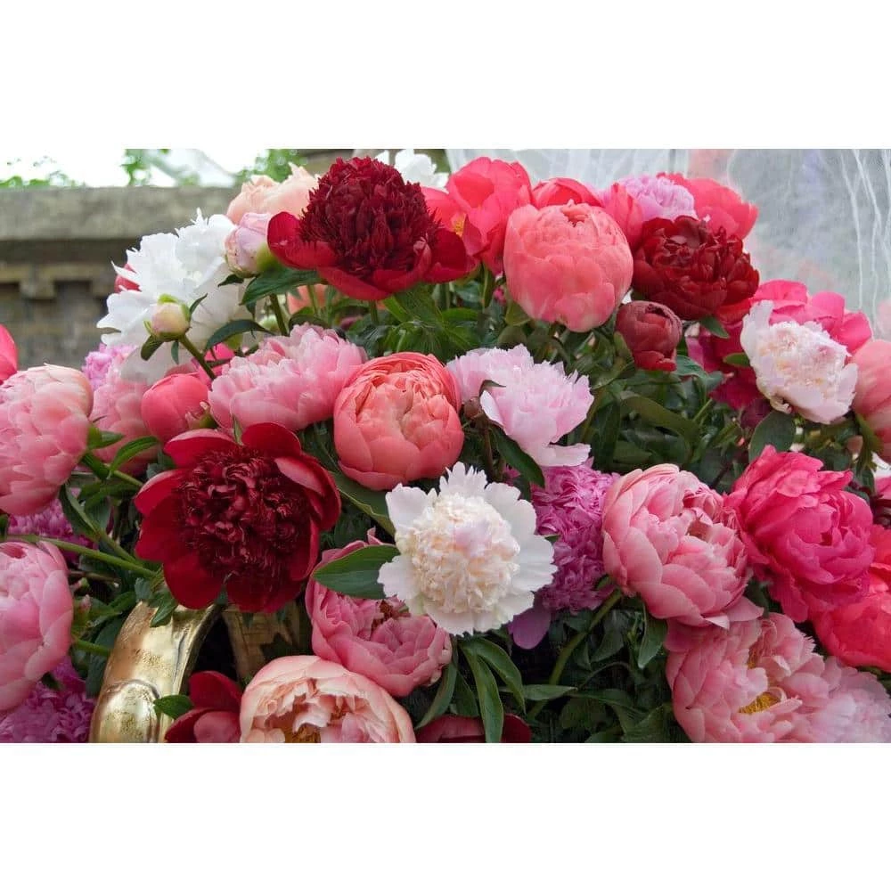 Easy to grow and delightfully fragrant, Peonies are the classics all gardeners desire. Thriving in full sun to light shade, huge double blooms sit atop sturdy erect stems. In Bloomsz Breeder’s Choice Cut Flower Peony Blend, you’ll find blooms that have: bright yellow accents in a center of creamy white, a touch of yellow at the base of milky white, deep coral buds that open to coral-peach, strikingly beautiful apple blossom pink coloration and deep pink that grows lighter at the edges.