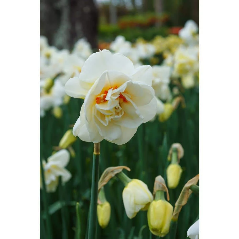 The lush, 4 in. blooms of Acropolis are elegant compositions in white, strikingly similar to Gardenias, except for the electricity produced by a few red petals at the heart. Very popular daffodil with professional flower growers thanks to the amazing colors, strong stem, long flowering time and the wonderful fragrance. Daffodils require very little gardening care, naturalize very well and perhaps most appealing.