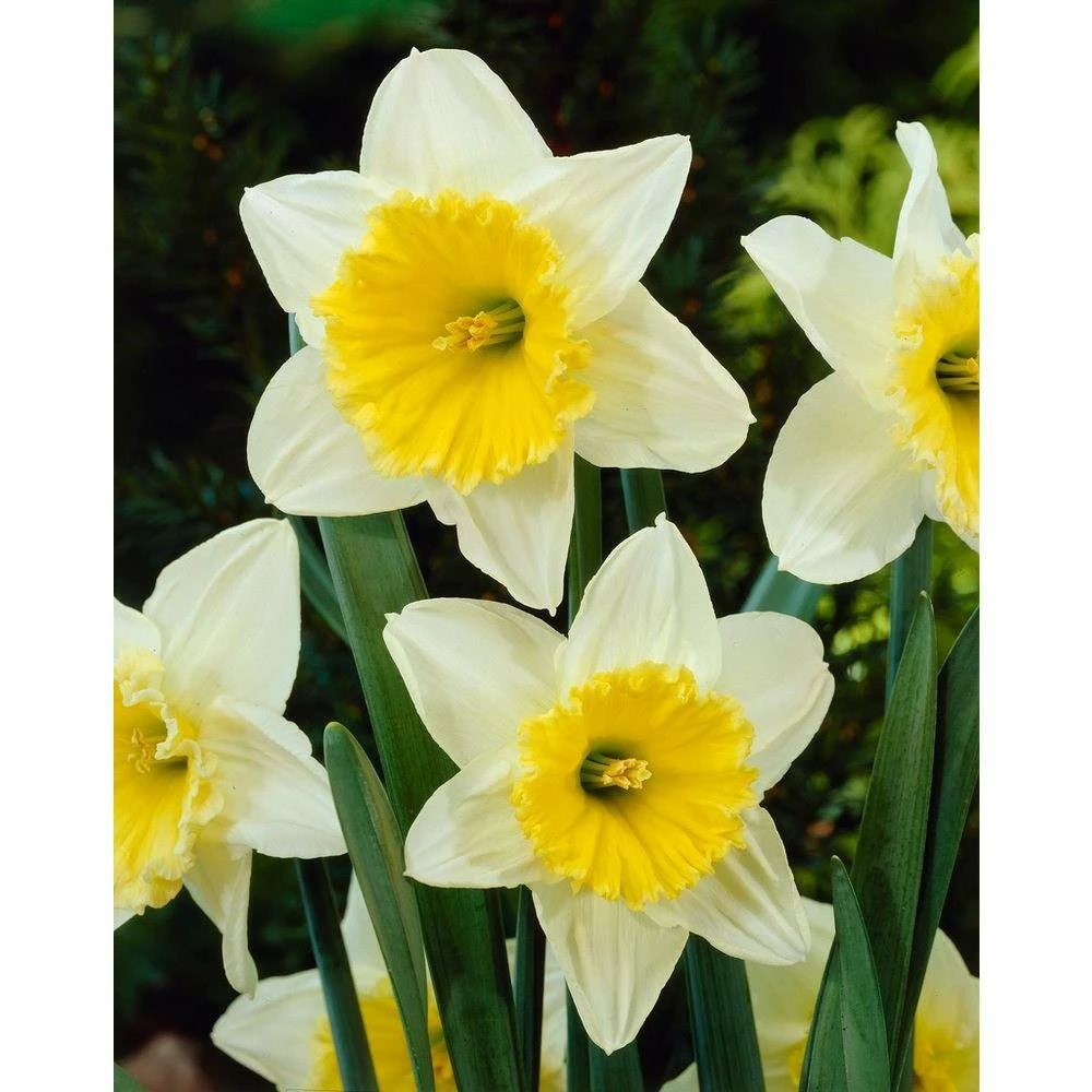 Whether planted in beds and borders, around shrubs or beneath deciduous trees, Ice Follies Daffodils will bloom consistently from year to year. Large, shimmering white outer petals surround a funnel-shaped, frilly yellow inner cup that fades to creamy white as the flowers mature. Each stem bears a single 4 in. flower emerging amid long, rich green strap-shaped foliage. Be ready for compliments when they’re used as focal points in cut flower arrangements.