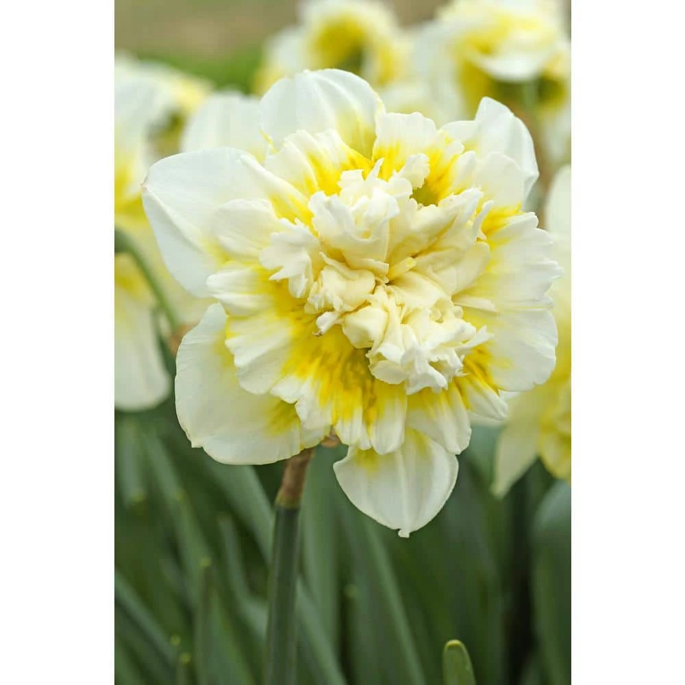 Resembling carnations with its fully double lemon-yellow petals turning creamy-white, Narcissus ‘Ice King’ is a marvelous addition to any mid spring borders. Beautiful addition to any garden. Flowers last for an extended period of time in the garden and make great fresh cut blooms as well.