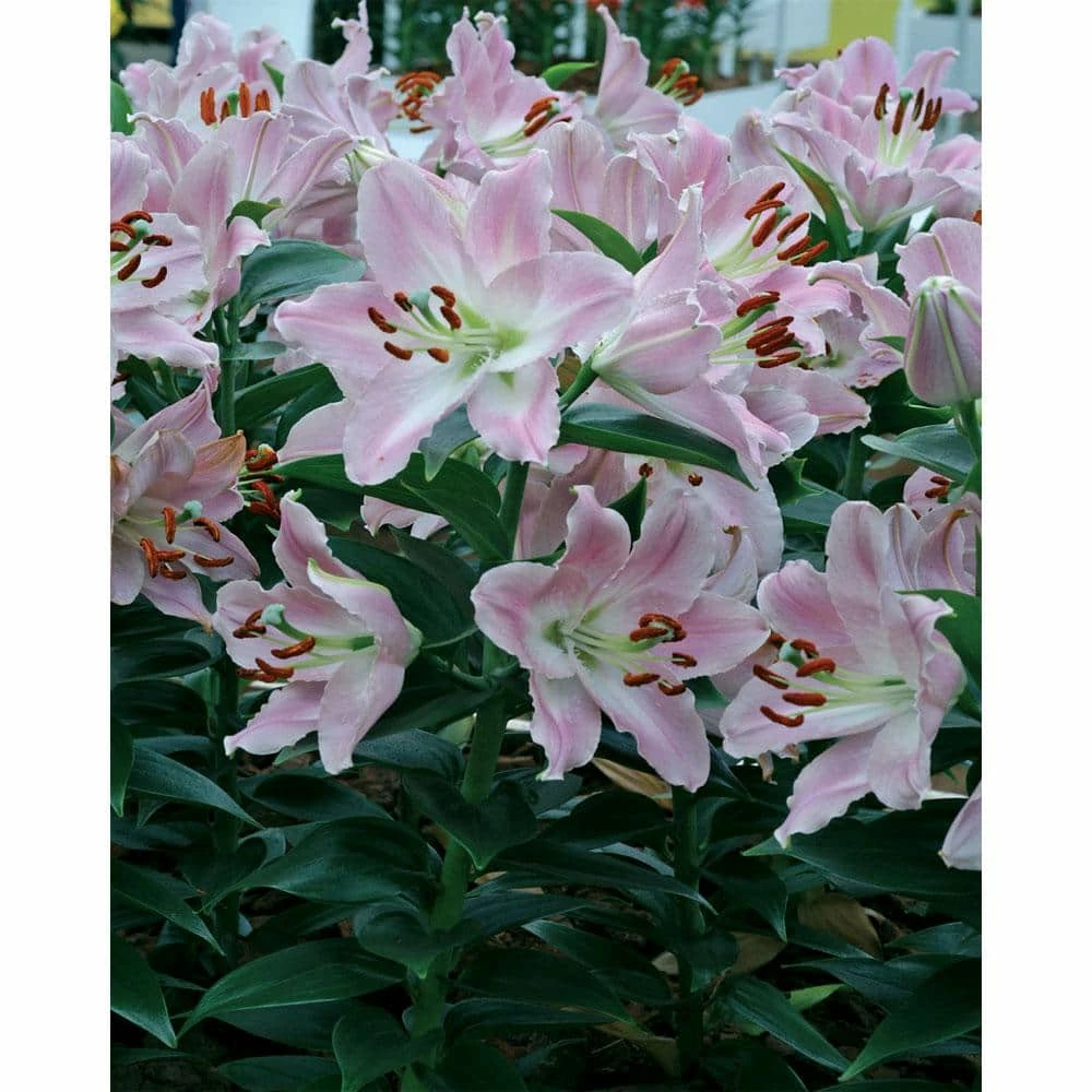 A much desired lily for its huge flowers and heavy fragrance. Beautiful, soft-pinkish purple flowers with white centers rise tall above glossy-green foliage. Begins blooming in late summer.