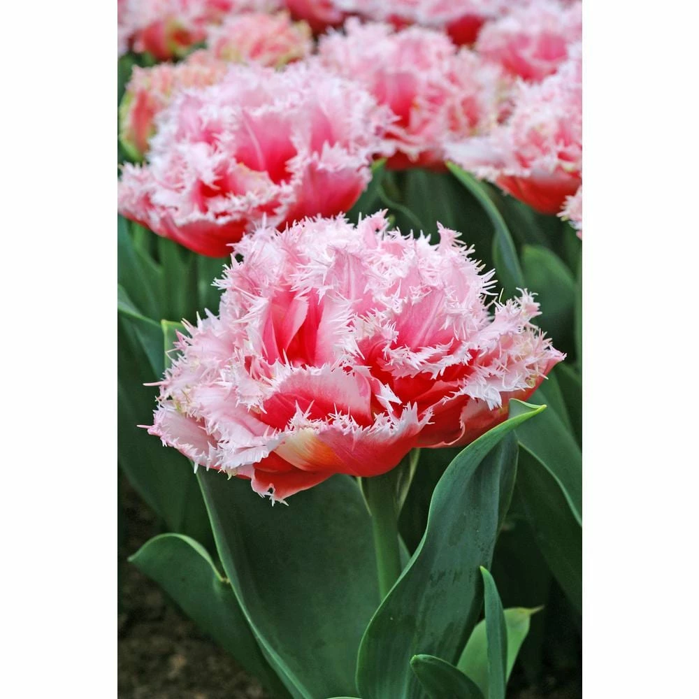 Get a conversation started with a tulip that is not often found in the landscape. This fully double bombshell of a bloom is deep rose with crystalline, paler rose-pink petal edges that are among the most finely and intricately fringed of all. Like snow flakes, no 2 are the same. We truly look forward to seeing those blue-green leaves start to emerge as the Earth awakens from its winter sleep.