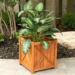 Leisure Season Medium 12 in. W x 12 in. D x 10 in. H Square Wooden Brown Planter (3-Pack)