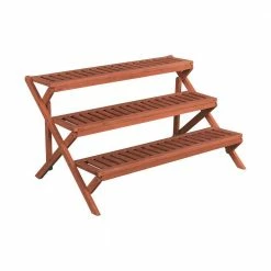 Leisure Season 38 in. x 24 in. Medium Brown Solid Wood 3-Tier Quarter Round Plant Stand