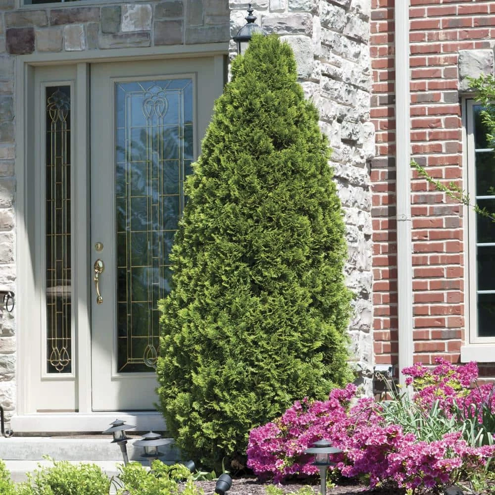 Emerald Green Arborvitae is a top choice for planting in a row to create privacy screens and windbreaks. It has a narrow, pyramidal habit and glossy, green foliage. This evergreen tree grows about 15 ft. tall with a 3 ft. to 4 ft. spread. Low maintenance and easy to grow, it performs best when planted in full sun to partial shade.