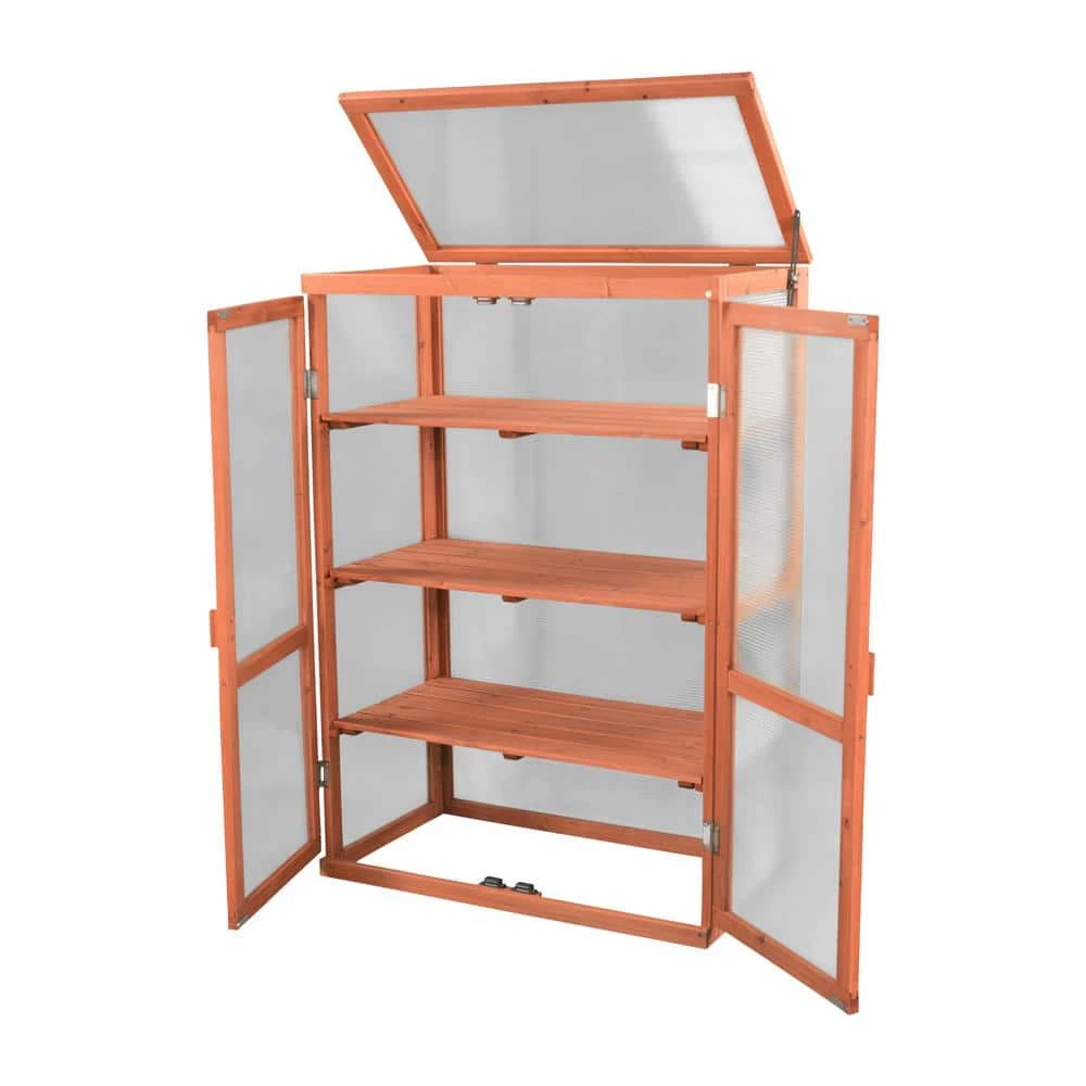 This attractive miniature greenhouse from Leisure Season is stylishly built using solid wood from the cypress family to produce a growing environment for plants to flourish in any season. The bottomless cabinet-like greenhouse includes three adjustable-height wooden shelves to situate seedlings and young plants and features a lift-up lid and dual front doors. At 30 in. W x 16 in. D x 43 in. H, it occupies minimal floor space but furnishes ample room to incubate young plants on a patio, balcony, porch or wherever garden space is limited.