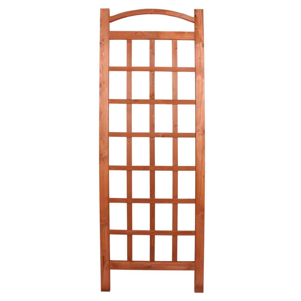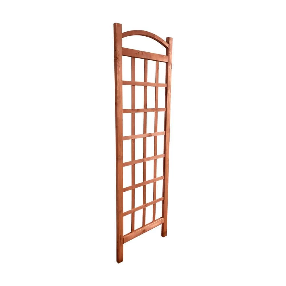 Crafted of solid wood harvested from the Cypress family, our arched square lattice trellis can withstand harsh environmental elements. It offers an exceptional dimensional stability, standing straight and flat despite moisture or humidity. Similar to Western Red Cedar, it offers strong support for climbing plants, is strong enough to handle weight and has natural preservatives that keep critters at bay. Measuring 24 in. W x 1 in. D x 72 in. H, it is suitable for growing various plants like morning glories, tomatoes, begonias or cucumbers. If you want to incorporate style and character to your garden design, our wooden stand features a curved top, flat finials, a classic grid design and medium brown finish.