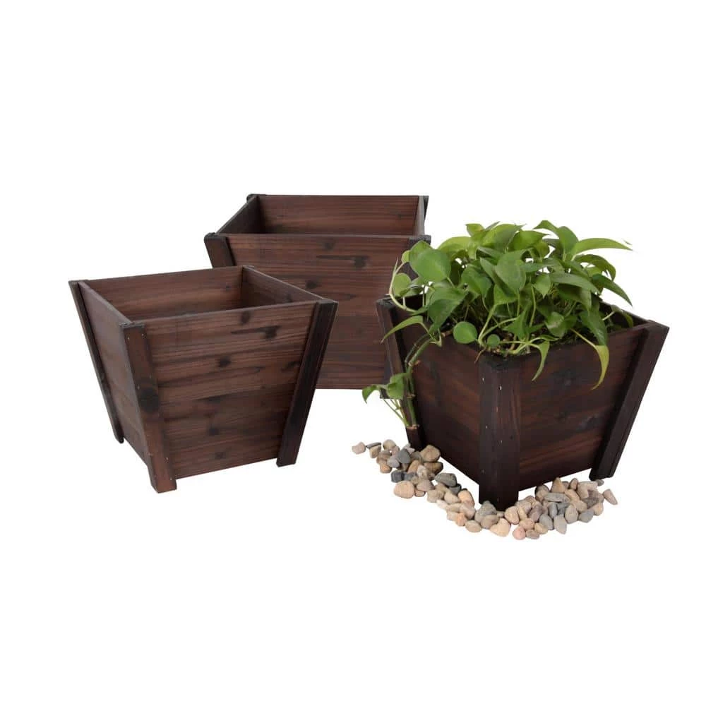 Durable, earth-friendly, set of 3 large tapered wooden planters. Planting concerns. Put them to bed. Literally. Our tapered wooden planter creates the perfect balance between art, mother nature, and your planting process. Comes in a same-size, set of 3. Use outdoor or indoor. Can also function as storage for towels, toys, and beverages at poolside. Crafted of solid wood harvested from the Cypress tree family with decay resistance similar to Western Red Cedar.