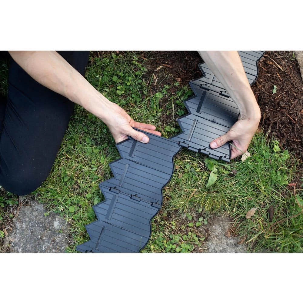 Border Master 20 ft. Plastic Poundable Landscape Lawn Edging creates an attractive scalloped edge for lawn and garden projects. Easy to install, without a need to dig. Edging blocks spreading of grass and maintains a durable boundary for mulch, rock, and other decorative materials.