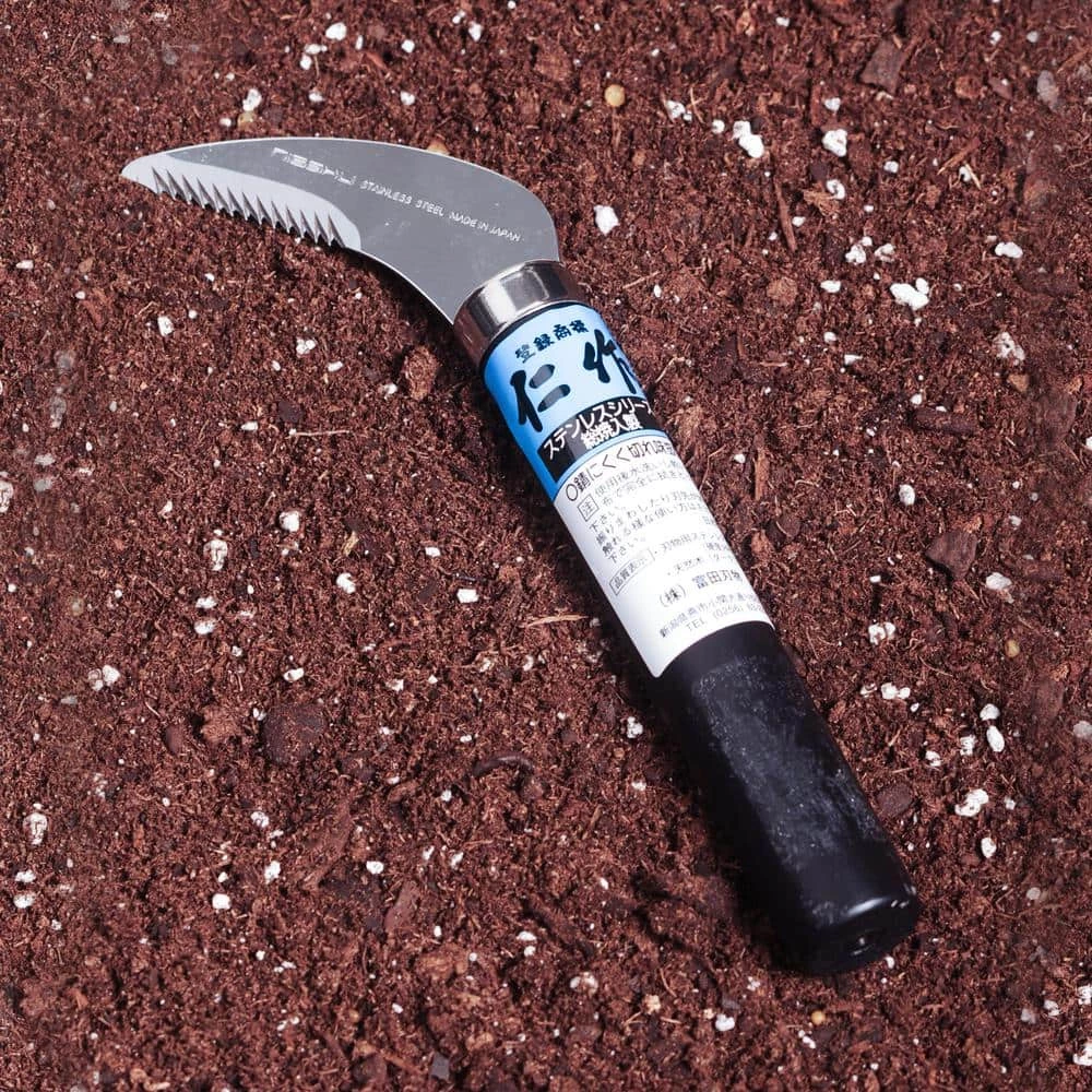 The Nisaku Stainless Steel Saw Tooth Sickle is an excellent hand-tool to help eliminate pesky ivy, weeds, and grasses in tight spaces. With it’s cutlery grade blade, it can also be used to prune branches and roots as well as twigs and stems with extraordinarily clean cuts. The sickle-Saw teeth are extraordinarily sharp for clean cuts.