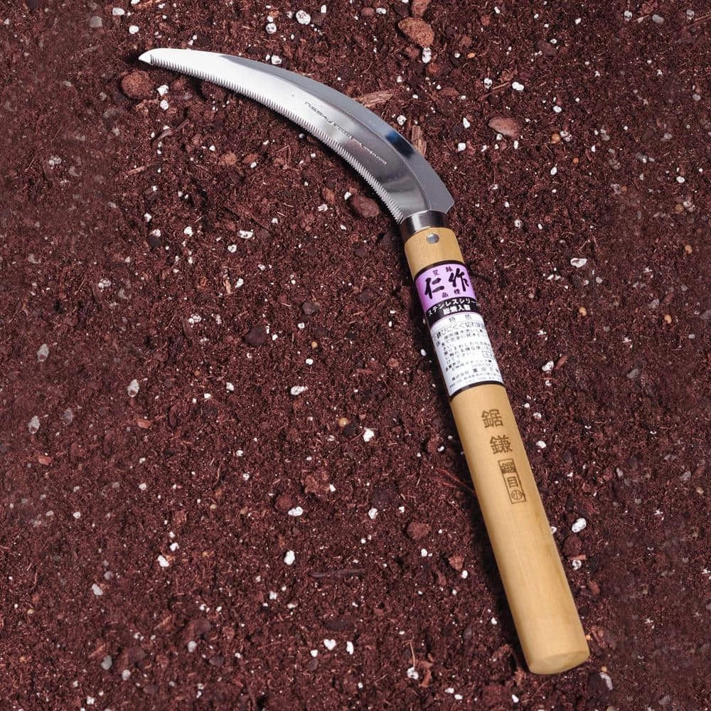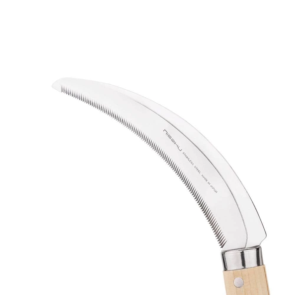 The Nisaku Nokogama Saw Tooth Sickle is a great multi-purpose tool to use in gardening or landscaping. With its ultra-sharp blade made of Japanese stainless steel and sturdy base has small teeth set in a slightly curved blade for fast aggressive cutting. Made in Japan with the finest stainless steel, the Nisaku Nokogama Saw Tooth Sickle is a fantastic gardening and landscaping tool.