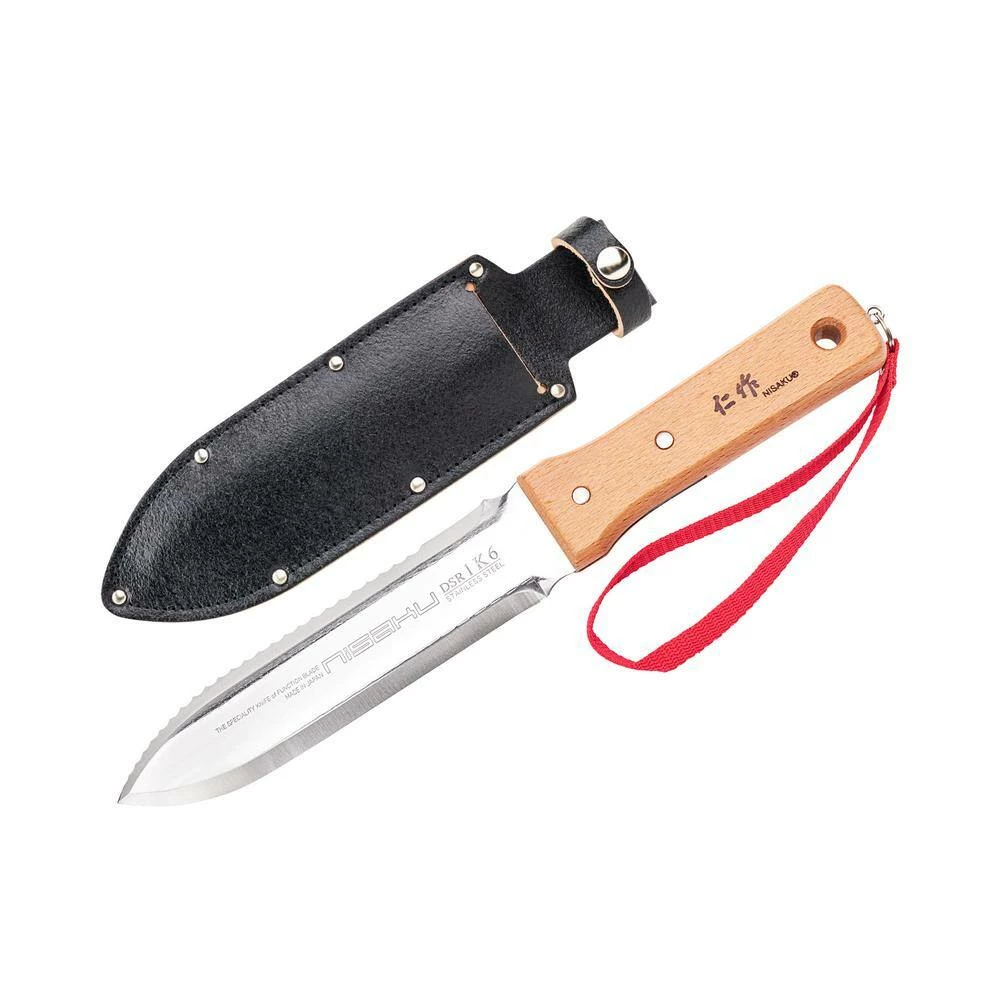 - Made in Japan with the finest stainless steel, the Nisaku stainless steel weeding knife features both serrated and straight edge blades, and is a fantastic gardening, landscaping, and camping tool