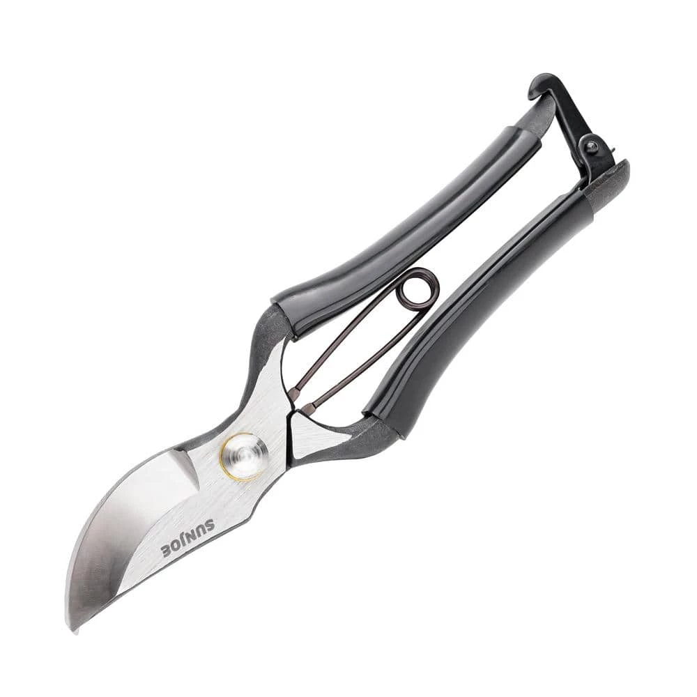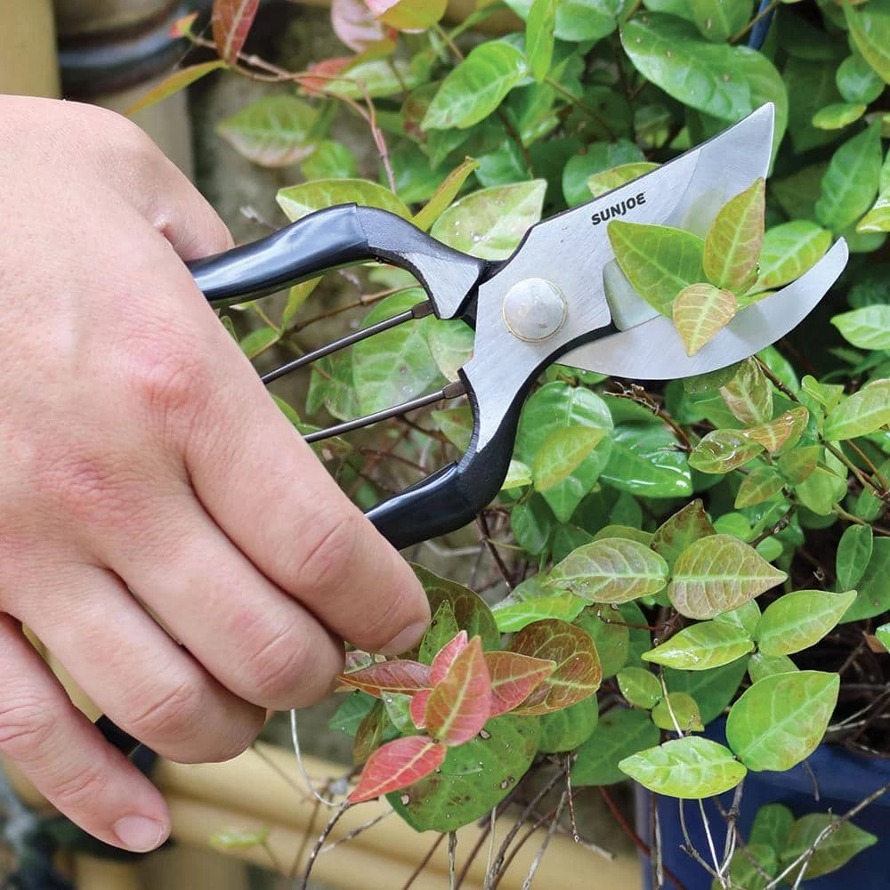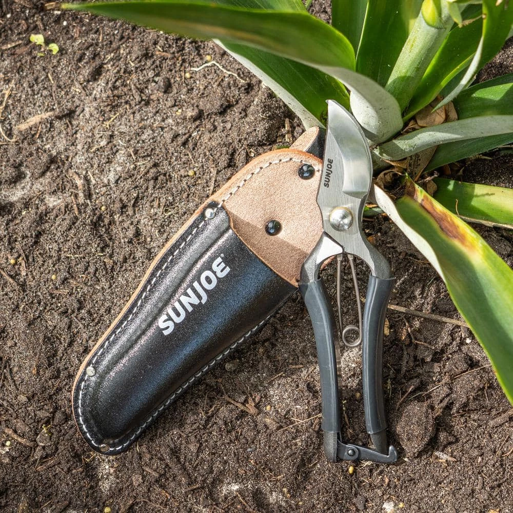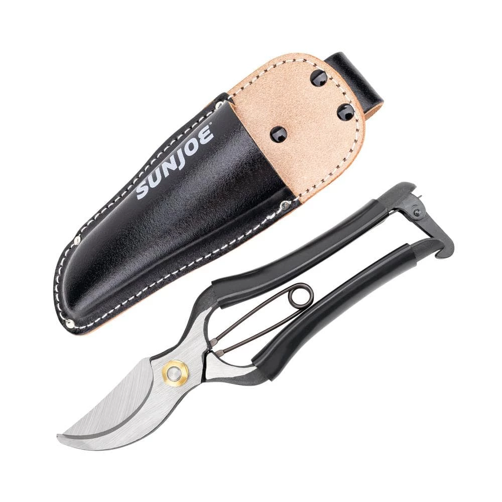 PRUNE LIKE A PRO. Give your green thumb a helping hand with NJPSC1 Carbon Steel Garden Secateurs from SUN JOE. Proper pruning encourages plants to thrive and is key to maintaining, healthy flowering foliage and fruit trees. Tame your shrubs, prune potted plants, trim indoor greenery and clip bushels of flowers with the expertly crafted, classically designed gardeners essential. Made from premium quality Japanese steel, the durable steel cutting blades are ideal for pruning green, growing wood, stems, twigs and woody plants up to 0.07 in. Dia and NJPSC1 includes a safety holster for convenient storage after use. Prune your way to a greener yard and garden and Go With Joe NJPSC1 Carbon Steel Secateurs from SUN JOE. GET EQUIPPED.