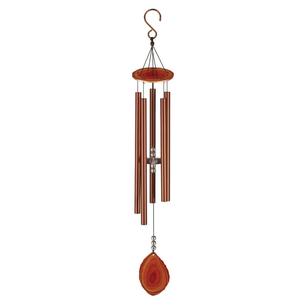 Brightly colored matching quartz pieces form the top and sail of this remarkable design. The central cord holds a clear acrylic clapper and decorative beads. Precision-tuned thick aluminum chime tubes deliver a premium sound experience and sustained ring. Available in 4 colors – Amber, Blue, Pink and Purple.
