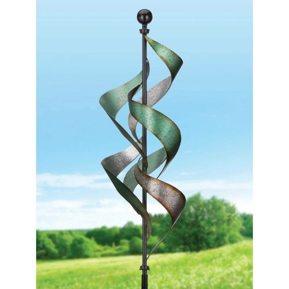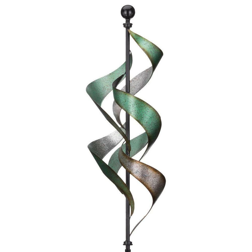 The Waterfall Vertical Wind Spinner utilizes multiple blades encircling a thick metal pole that move with the slightest breeze creating a waterfall effect. The spinner’s finish is in a speckled teal and silver metallic paint. This is a spectacular addition for your yard.
