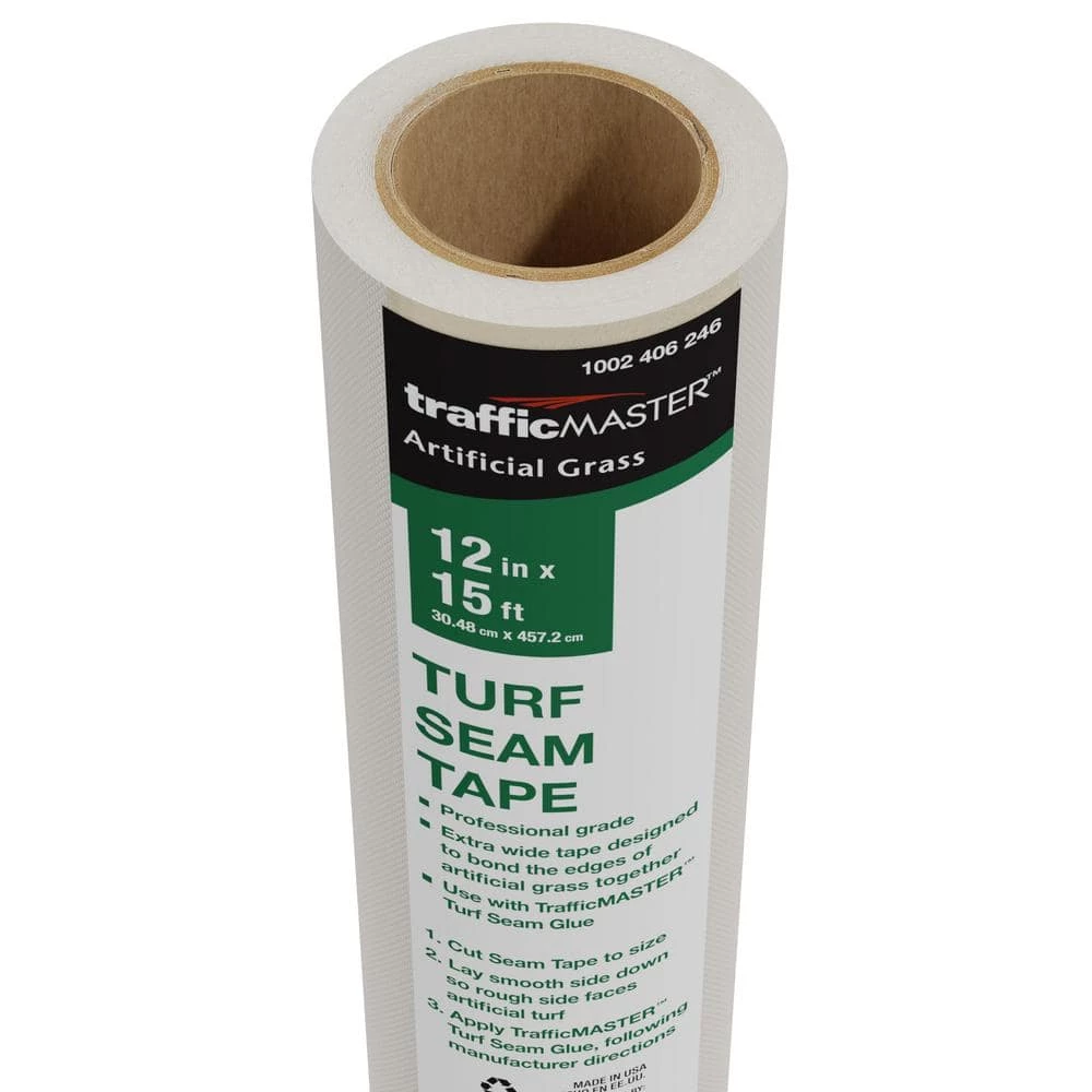 For secure, permanent and undetectable artificial grass seams, use TrafficMaster Seam Tape. When applied correctly, the TrafficMaster seam tape and glue method permanently holds the edges of artificial grass together. Lay the seam tape where 2 edges of artificial grass meet and apply TrafficMaster Seam Glue, sold separately, over the seam tape. Once the seams are fully bonded, they will be resistant to all weather conditions.