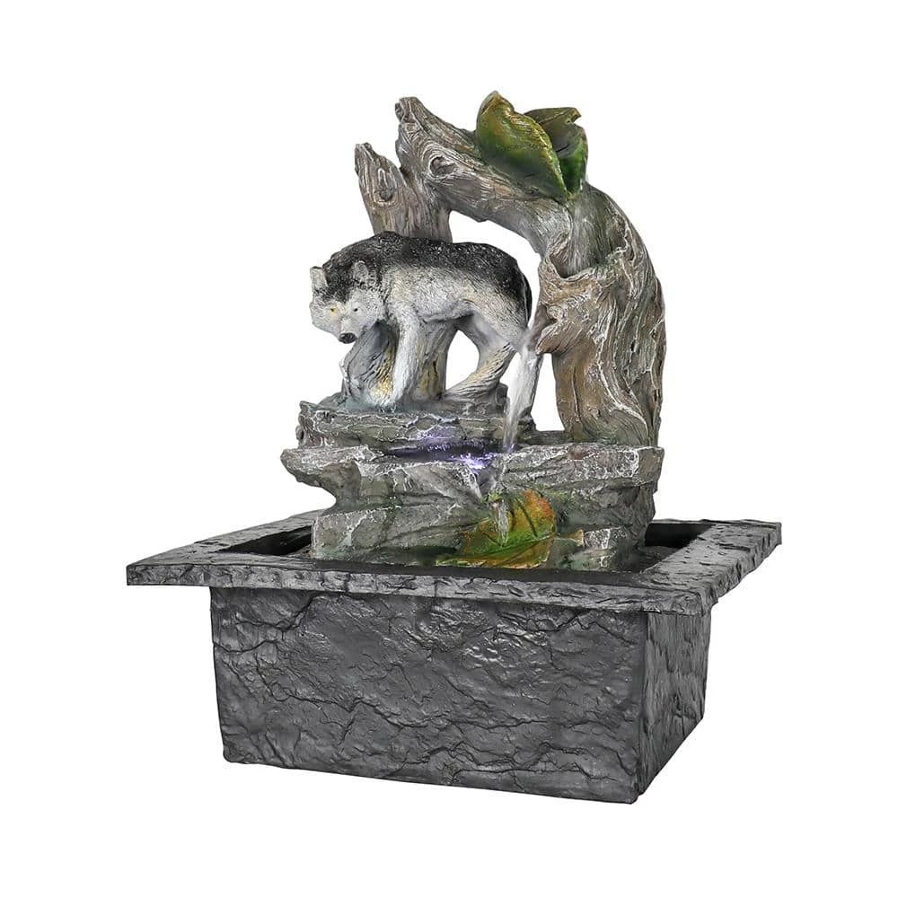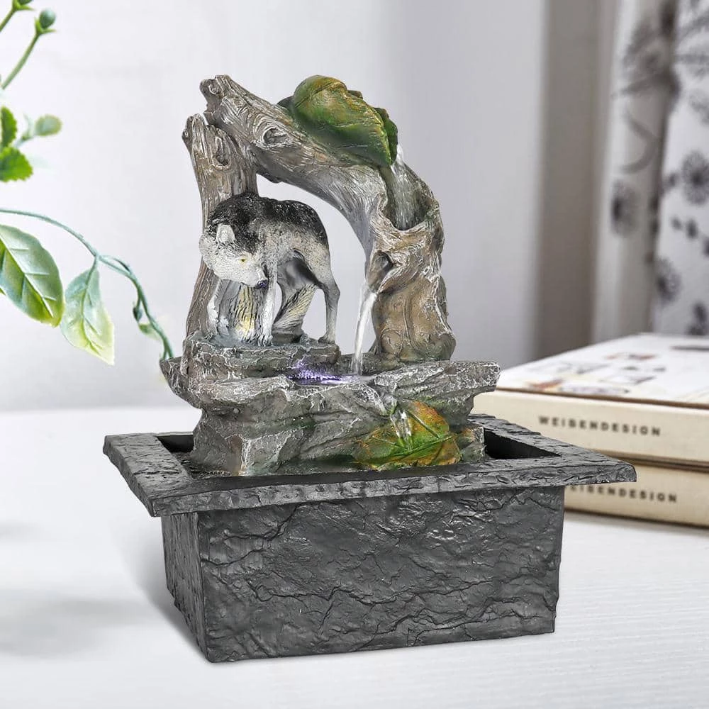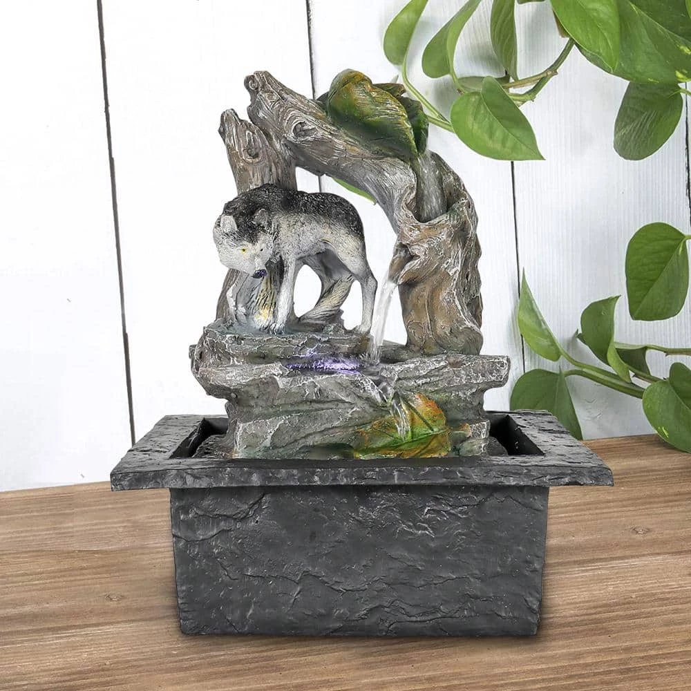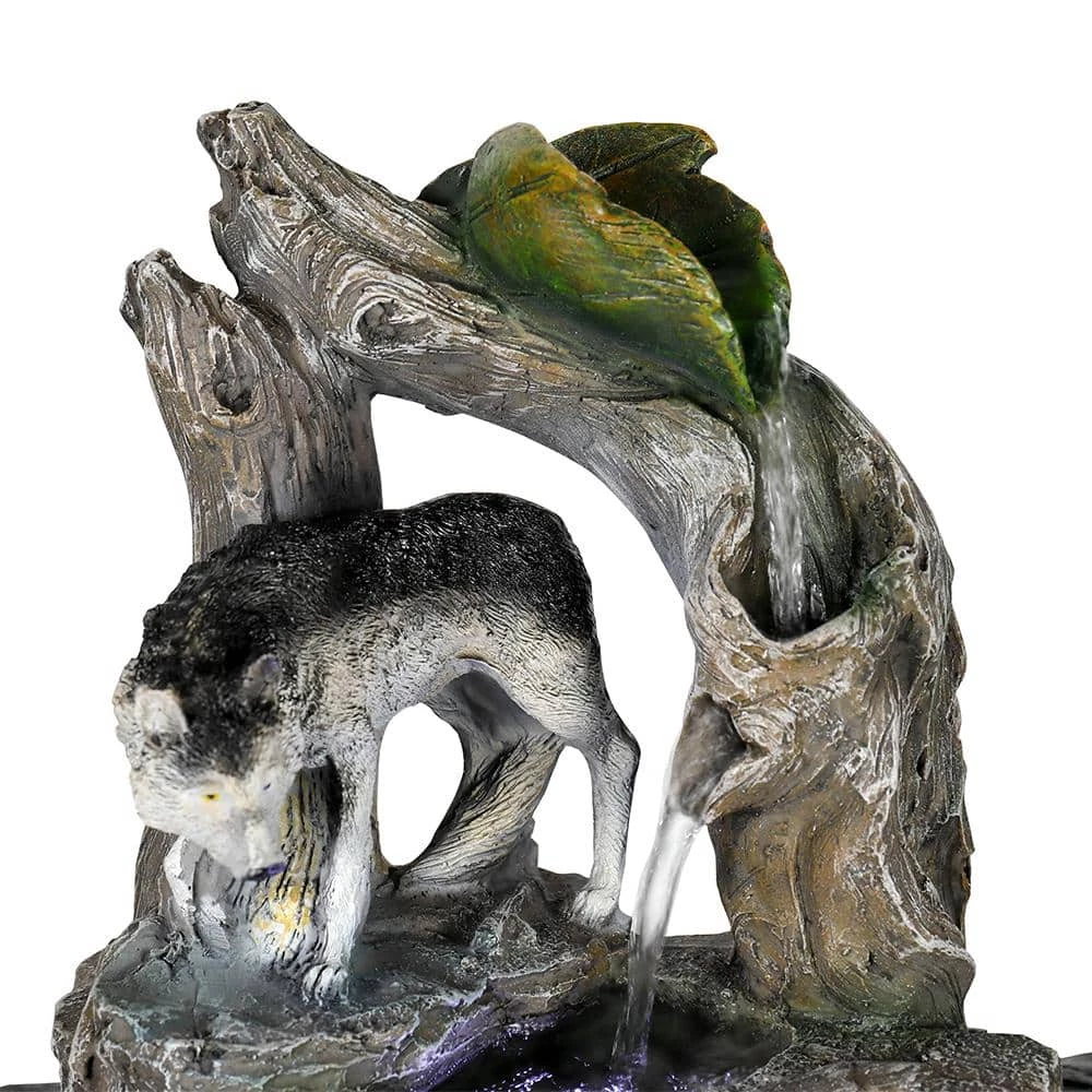 - Natural Design: It will just like to bring a part of nature to your house and office by adding a cute cascading tiered waterfall tabletop fountain with animals design to your living room, office room, etc. the wolf walking through the woodland and playing with the running waterfall features helps to add vitality to the surroundings.