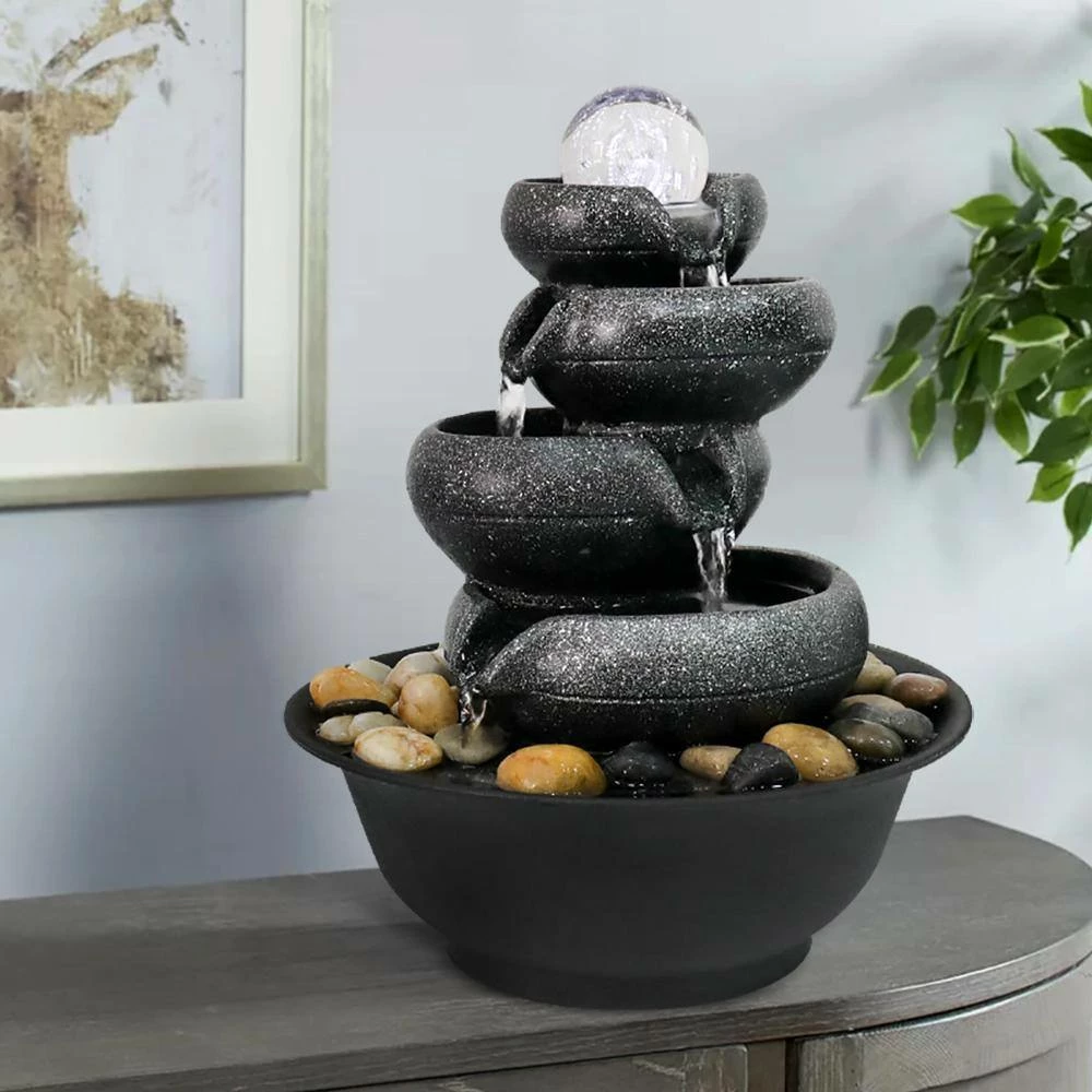 - With sculpted clay-liking 5 bowls design, this relaxation water fountain will fill your rooms with peace and tranquility