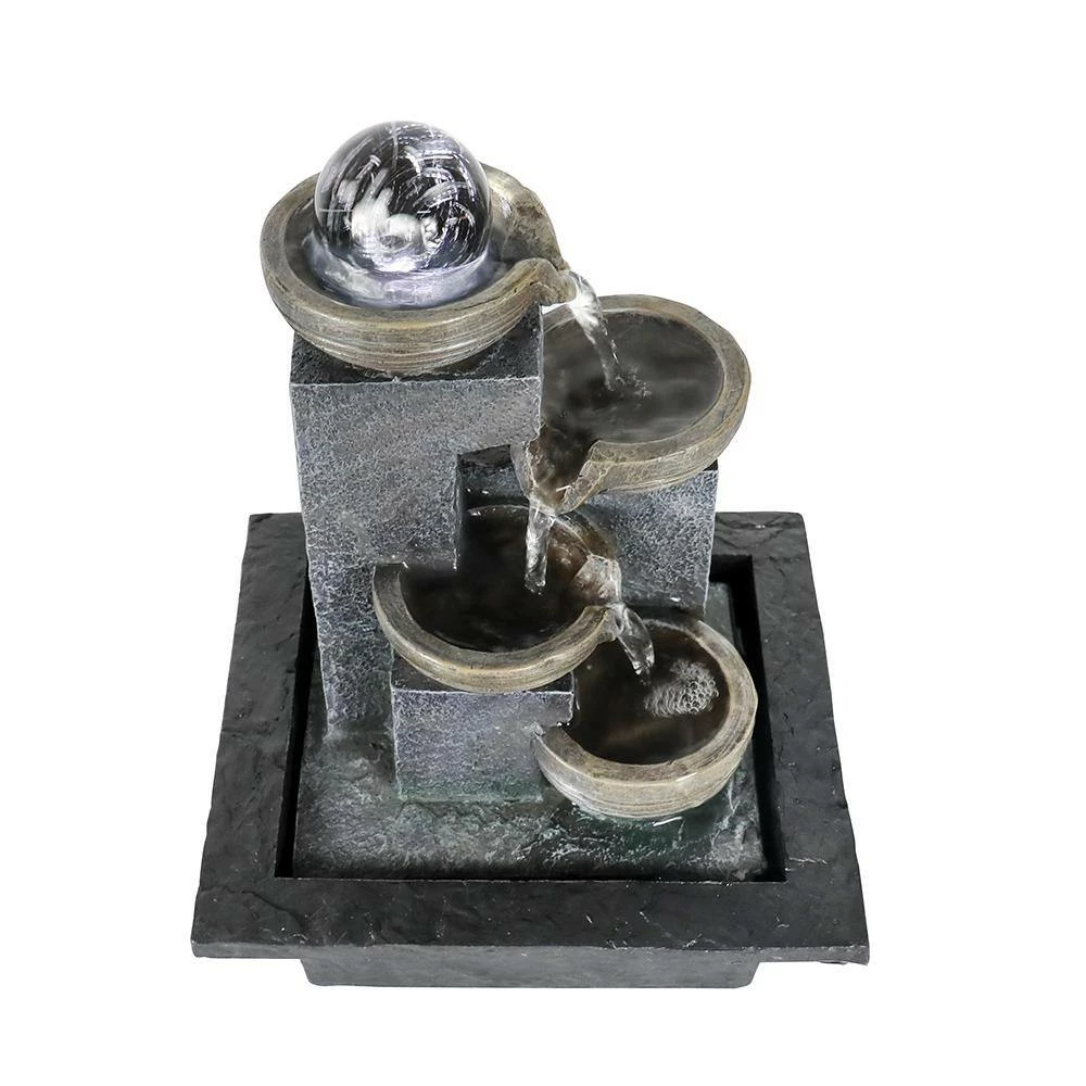 - Enjoyment: designed with LED lights, the waterfall desktop fountain also makes an fantastic grab and gift for parties, weddings, Christmas, etc. the water flows nicely and makes a lovely gentle sound like a little brook, if you like, also can decor the 5-tiered LED spinning orb fountain indoor with some small natural rocks to louder the soothing water sounds, it’s a sensory experience to enjoy the charming running water sounds and peaceful looking in a dim room or on the evening outside patio table