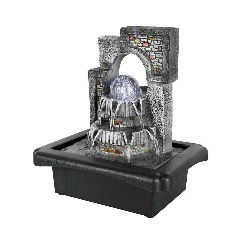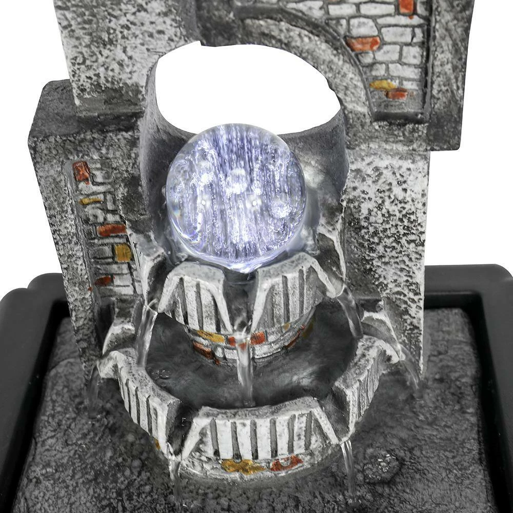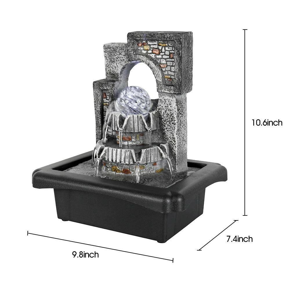 Relax and enjoy the sounds of nature with this indoor waterfall fountain. With the high-quality resin fountain, you will create a meditative, relaxing atmosphere, even in an urban jungle. The tabletop fountain looks great in your house and office places, such as meeting room, coffee room, living room, book room, yoga room, meditation room, dinning room, bedroom, kitchen, etc. Take in the tranquil sounds of the water gently cascading over the natural-looking fountain tiers. The resin, stone powder construction are weatherproof, rust-resistant and durable for years of quality use. When start using, simply plug into an outdoor outlet, fill the basement with enough water, and watch as the interior pump creates a lovely water flow reminiscent of a lush rainforest. LED lights embedded in the tiers will illuminate your space, drawing attention to the relaxing waterfall day or night for added ambiance.