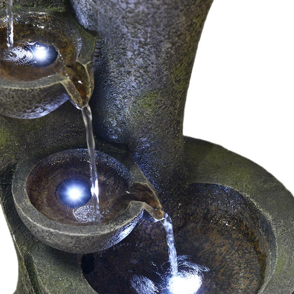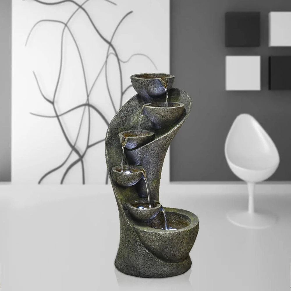 - Design: special curved shape with 6 bowls, decor with LED lights in each bowl, vintage yet modern, the indoor-outdoor fountain is ideal for decor in garden, patio, backyard, pool, entryway, stairs-side, etc.