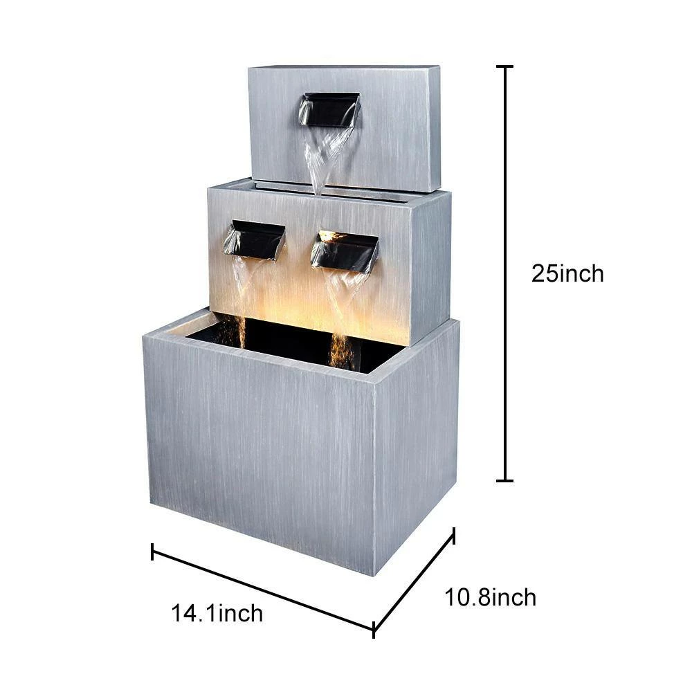 - Perfect size -with the suitable size 14.1 in. L x 10.8 in. W x 25 in. H for indoor or outdoor art décor, the metal waterfall fountain will add instant beauty and natural view to your living or working surroundings