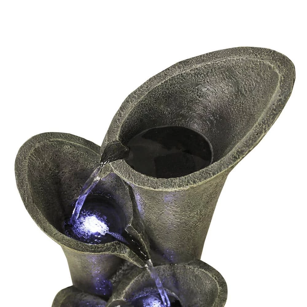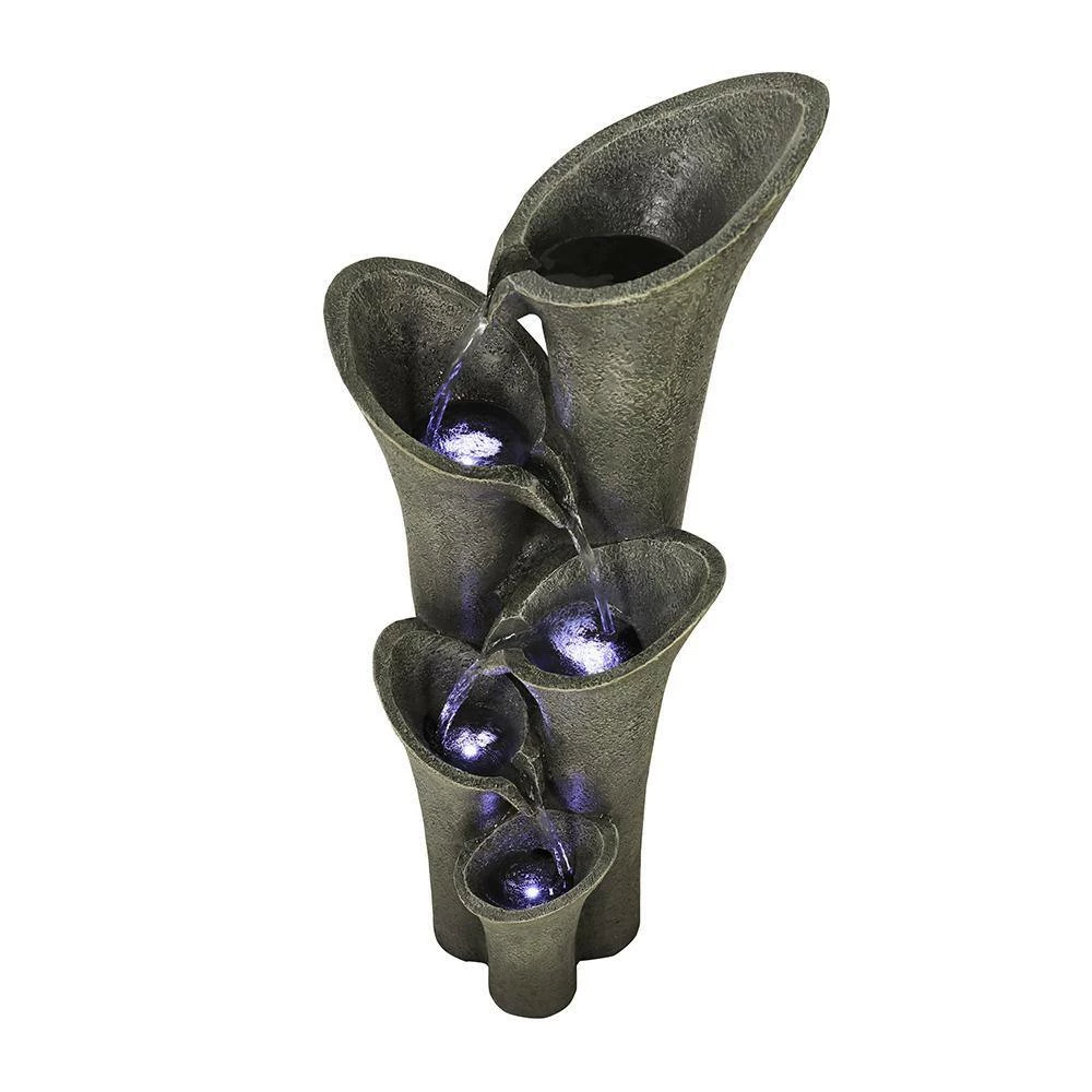 Relax and enjoy the sounds of nature with this outdoor waterfall fountain. With the high-quality resin fountain, you will create a meditative, relaxing atmosphere, even in an urban jungle. The waterfall feature looks great in your garden, patio, deck, porch, or yard space, etc. Take in the tranquil sounds of the water gently cascading over the natural-looking fountain tiers. The resin, stone powder, and fiberglass construction are weatherproof, rust-resistant, and durable for years of quality use. When start using, simply plug into an outdoor outlet, fill the lower level with enough water, and watch as the interior pump creates a lovely water flow reminiscent of a lush rainforest. LED lights embedded in the tiers will illuminate your space, drawing attention to the relaxing water pools day or night for added ambiance.