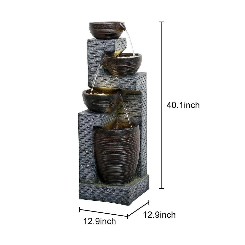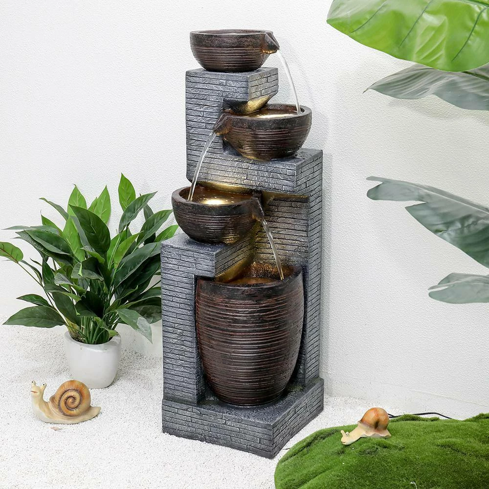 - 4-urns traditional rustic fountain with lights: water flows down 4 levels, producing a soothing, relaxing sound, making it an indoor Zen fountain with white noise to help you sleep, or in your office as a calming relaxing fountain, led lights illuminates and sparks the fountain and waterfall, make the indoor outdoor water feature the vivid focal point of the garden, yard, patio, office, house, etc.