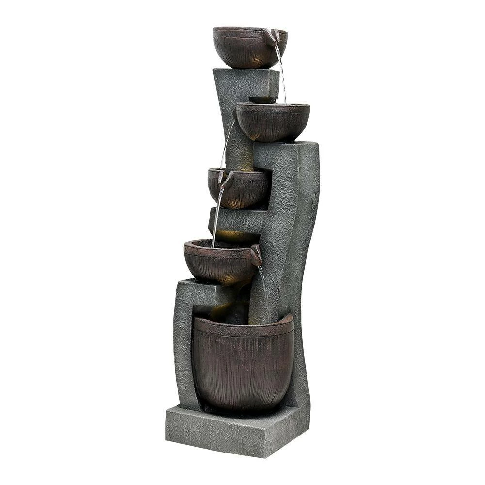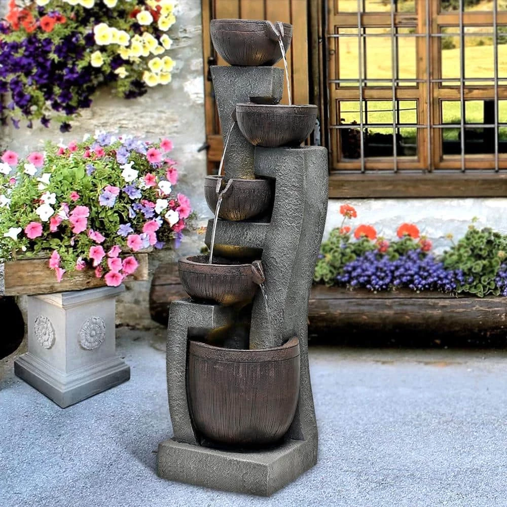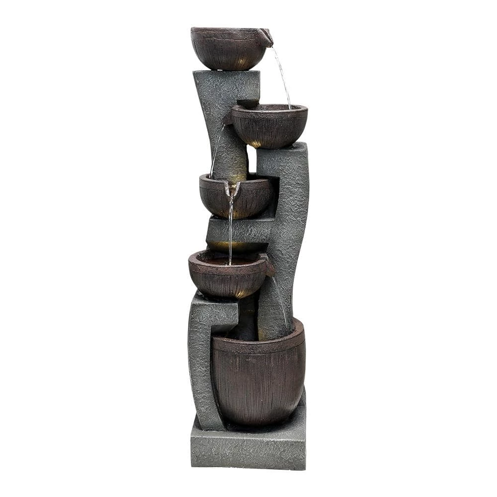 - Blend with contemporary design, rustic and natural element, the natural looking stone resin bowls fountain with LED light was designed with 4 jars at the first 4 tiers and a pot at bottom layer, water flows tiers of water pots circularly, bring soothing natural water sounds to create charming, tranquil, meditative ambiance, LED light in each jar (top jar has no light) creates a dazzling night time glow