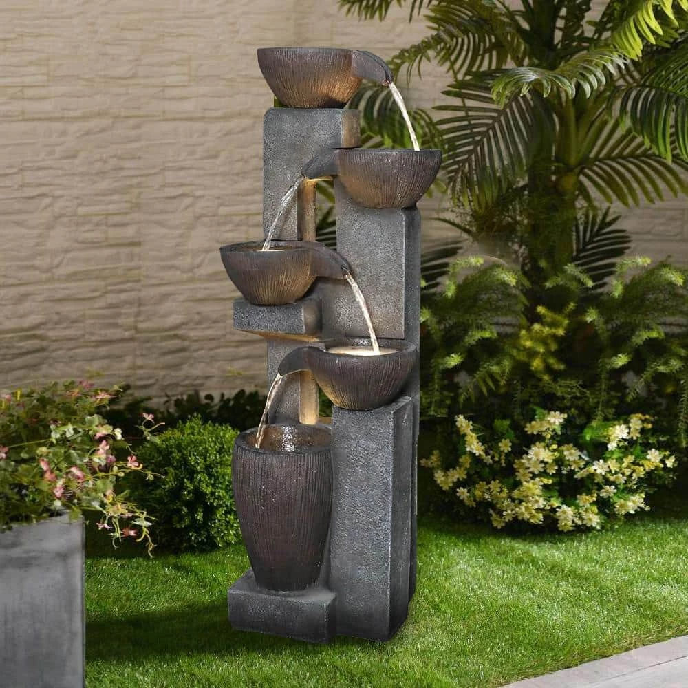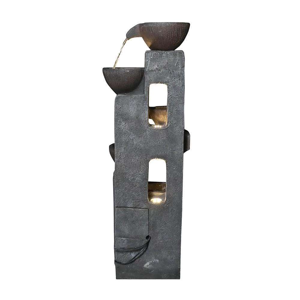 Relax and enjoy the sounds of nature with this outdoor waterfall fountain. with the high-quality resin fountain, you will create a meditative, relaxing atmosphere, even in an urban jungle. The waterfall feature looks great in your garden, patio, deck, porch or yard space, etc. Take in the tranquil sounds of the water gently cascading over the natural-looking fountain tiers. The resin, stone powder and fiberglass construction are weatherproof, rust-resistant and durable for years of quality use. When start using, simply plug into an outdoor outlet, fill the lower level with enough water and watch as the interior pump creates a lovely water flow reminiscent of a lush rainforest. LED lights embedded in the tiers will illuminate your space, drawing attention to the relaxing water pools day or night for added ambiance.