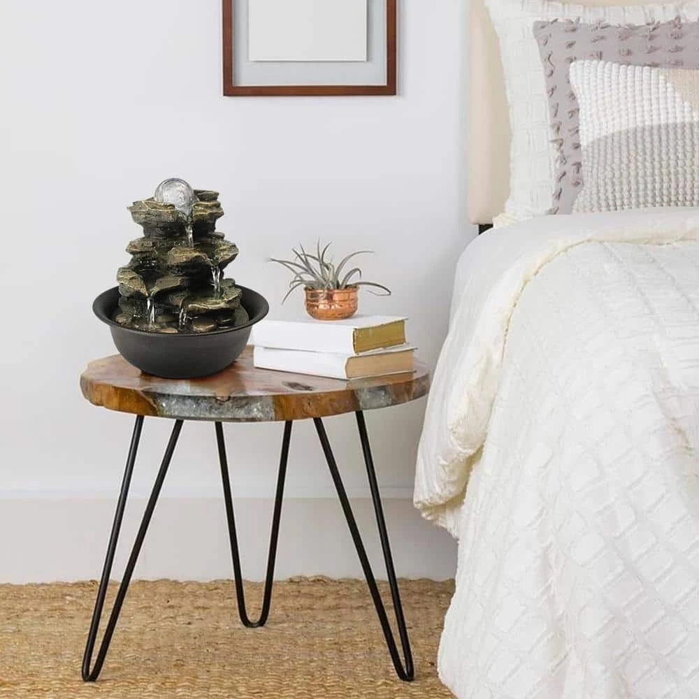 - Material-resin is durable and weather-proof to keep the indoor waterfall fountain new over time,-plug-in pump with LED lights included