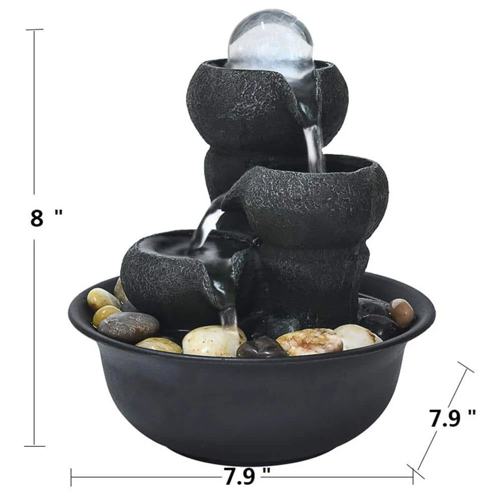 - With its suitable size: 7.9 in. x 7.9 in. x 8 in. this small fountain is great for decorating the office, living room, vacation house, etc.