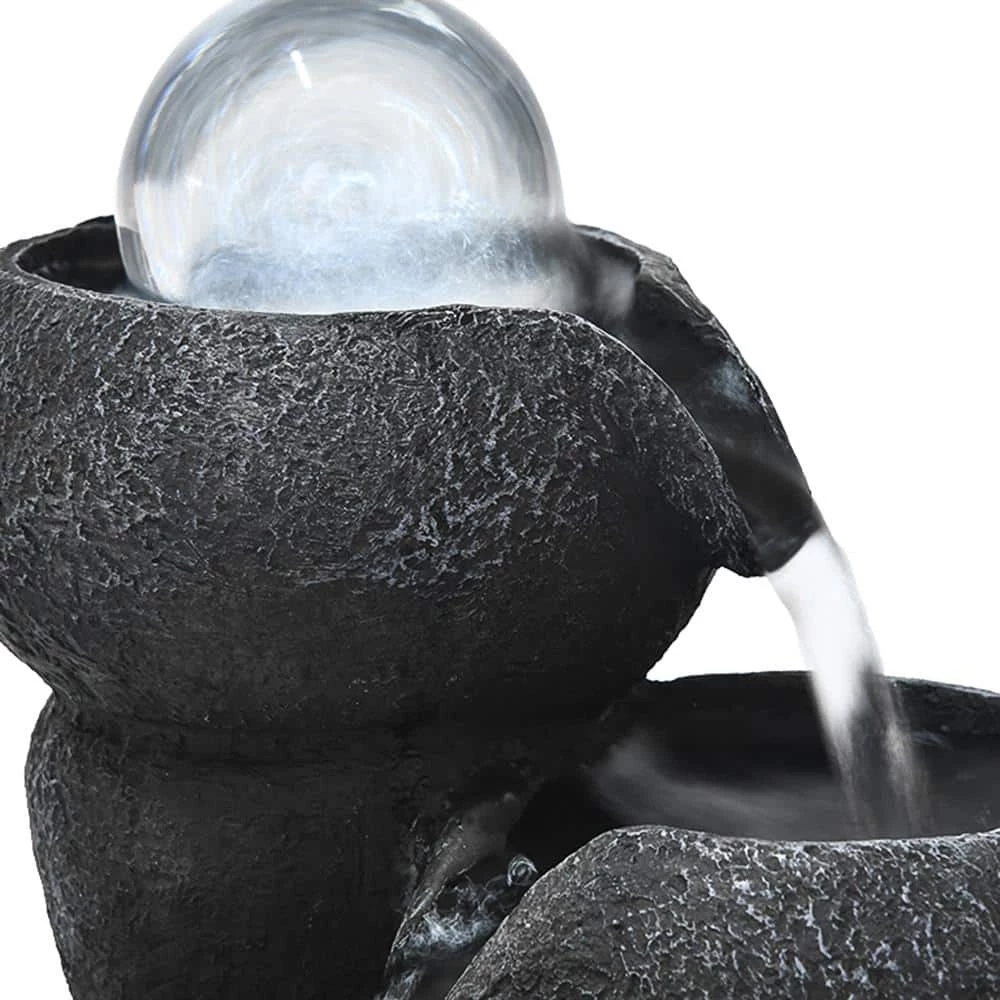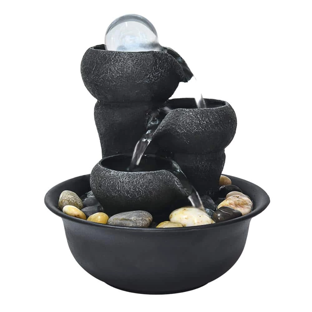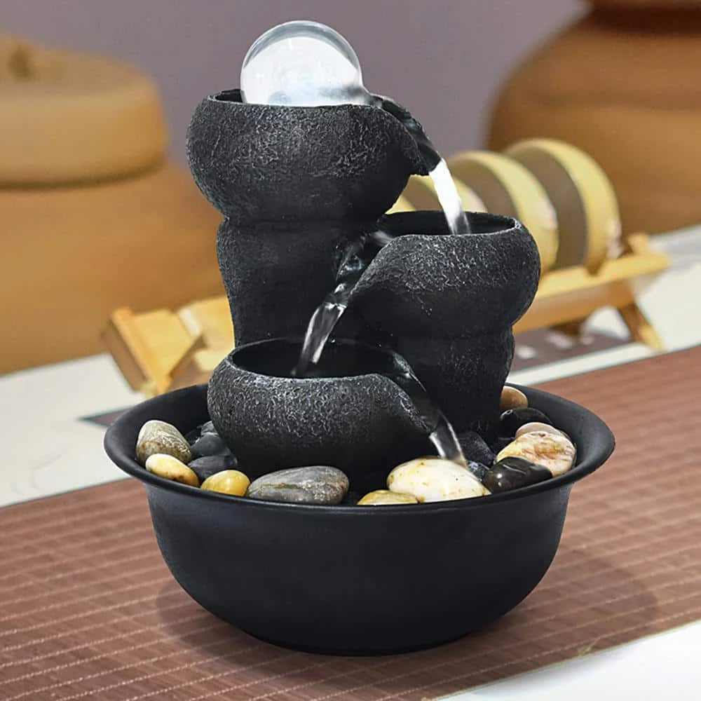 Relax and enjoy the sounds of nature with this indoor waterfall fountain. With the high-quality resin fountain, you will create a meditative, relaxing atmosphere, even in an urban jungle. The tabletop fountain looks great in your house and office places, such as meeting room, coffee room, living room, book room, yoga room, meditation room, dinning room, bedroom, kitchen, etc. Take in the tranquil sounds of the water gently cascading over the natural-looking fountain tiers. The resin, stone powder construction are weatherproof, rust-resistant and durable for years of quality use. When start using, simply plug into an outdoor outlet, fill the basement with enough water and watch as the interior pump creates a lovely water flow reminiscent of a lush rainforest. LED lights embedded in the tiers will illuminate your space, drawing attention to the relaxing waterfall day or night for added ambiance.