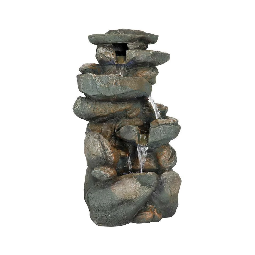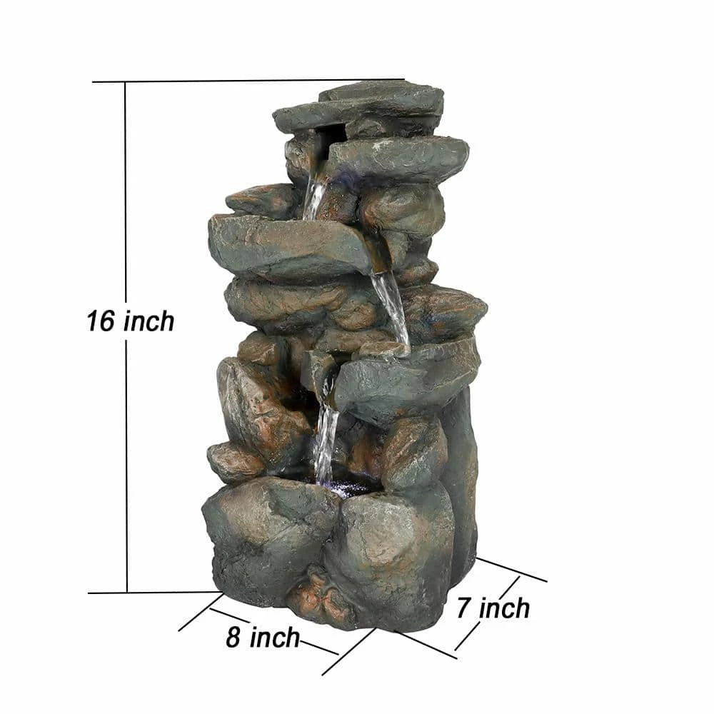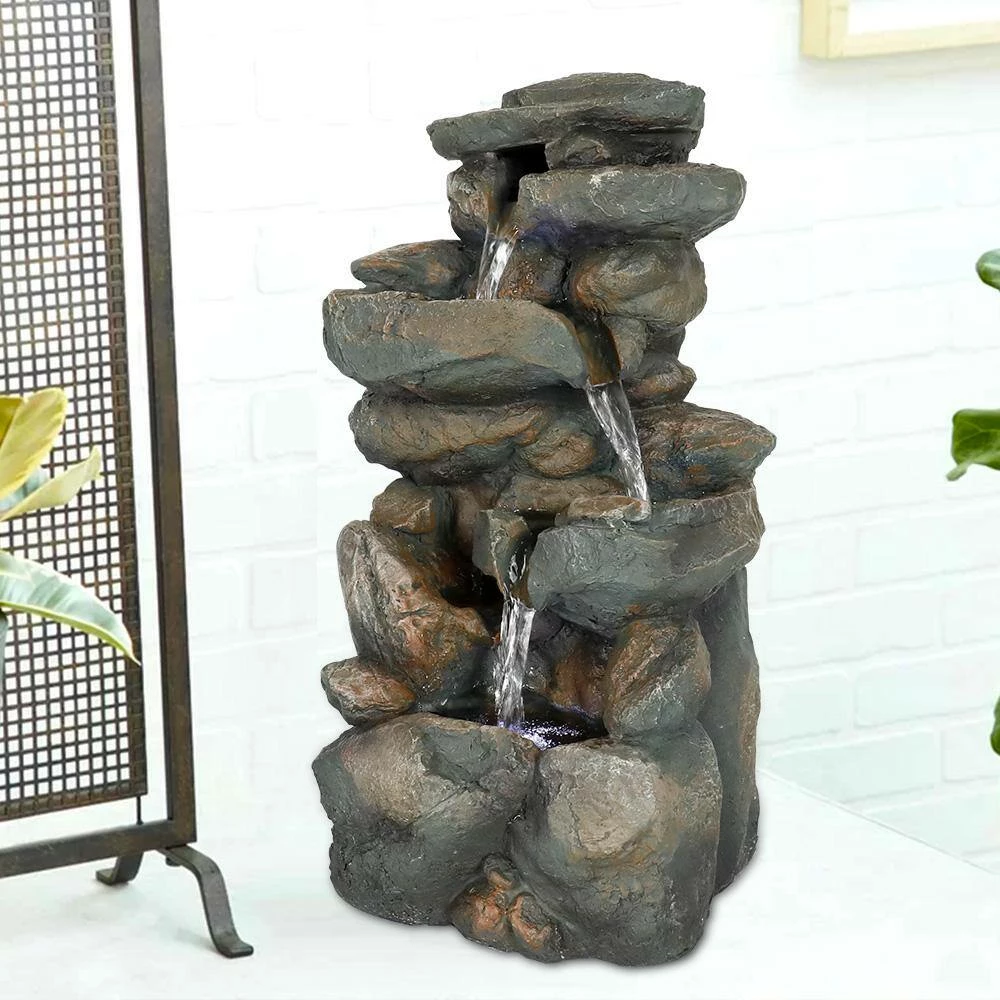 - Replicates natural rock-liking waterfalls: realistic gray stone constructed this 5-step rockery falls indoor waterfall, brings a touch of natural beauty to your indoor outdoor space, this rockery stone fountain was not made of real stone but made from a type of lightweight cast resin, which is much lighter than stone, but as durable and eco-friendly as stone, ensures long-lasting and easier moving around to match your decorating style